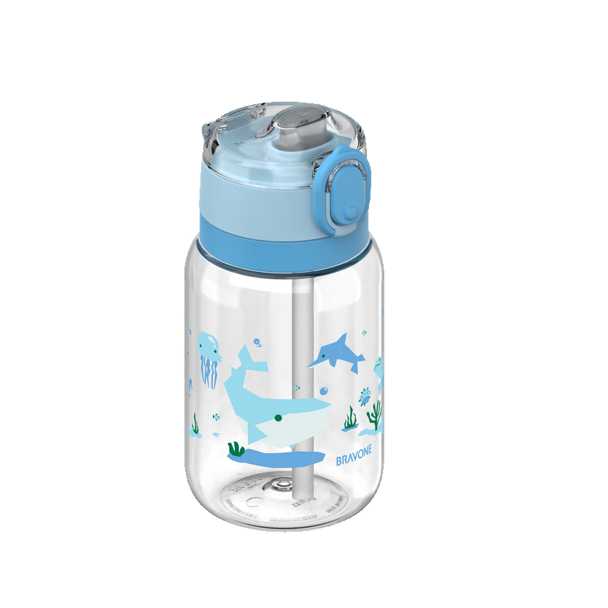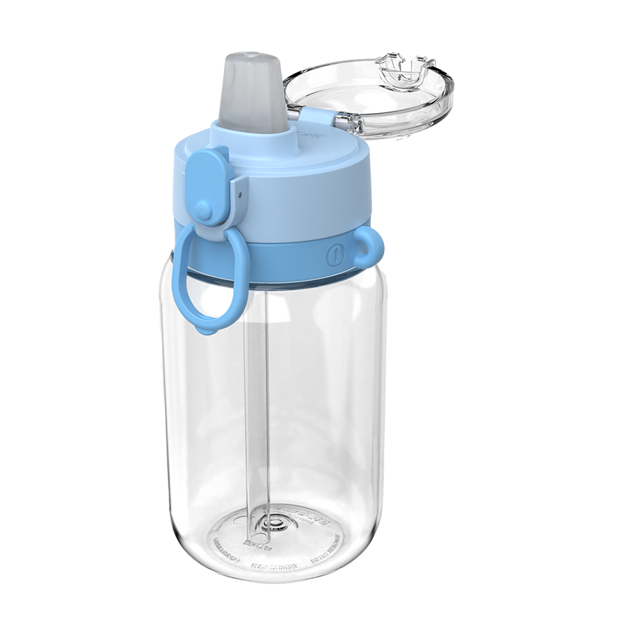 We want to do something much less, simpler and intuitive. More or less this is the concept of the "Bouncing Bottle", the simplest bottle we ever designed for toddlers to kids, no metal spring is used, our kids can purely taste real beverages, but not metal. All functions are simple, the simple lock is fun and secure, two steps open can prevent spilling while opening, and pulling down the straw for cleaning and putting it back in the right position, then good to go. Also, three decorate silicone rings to suit everyday outdoor wear style for the kids.